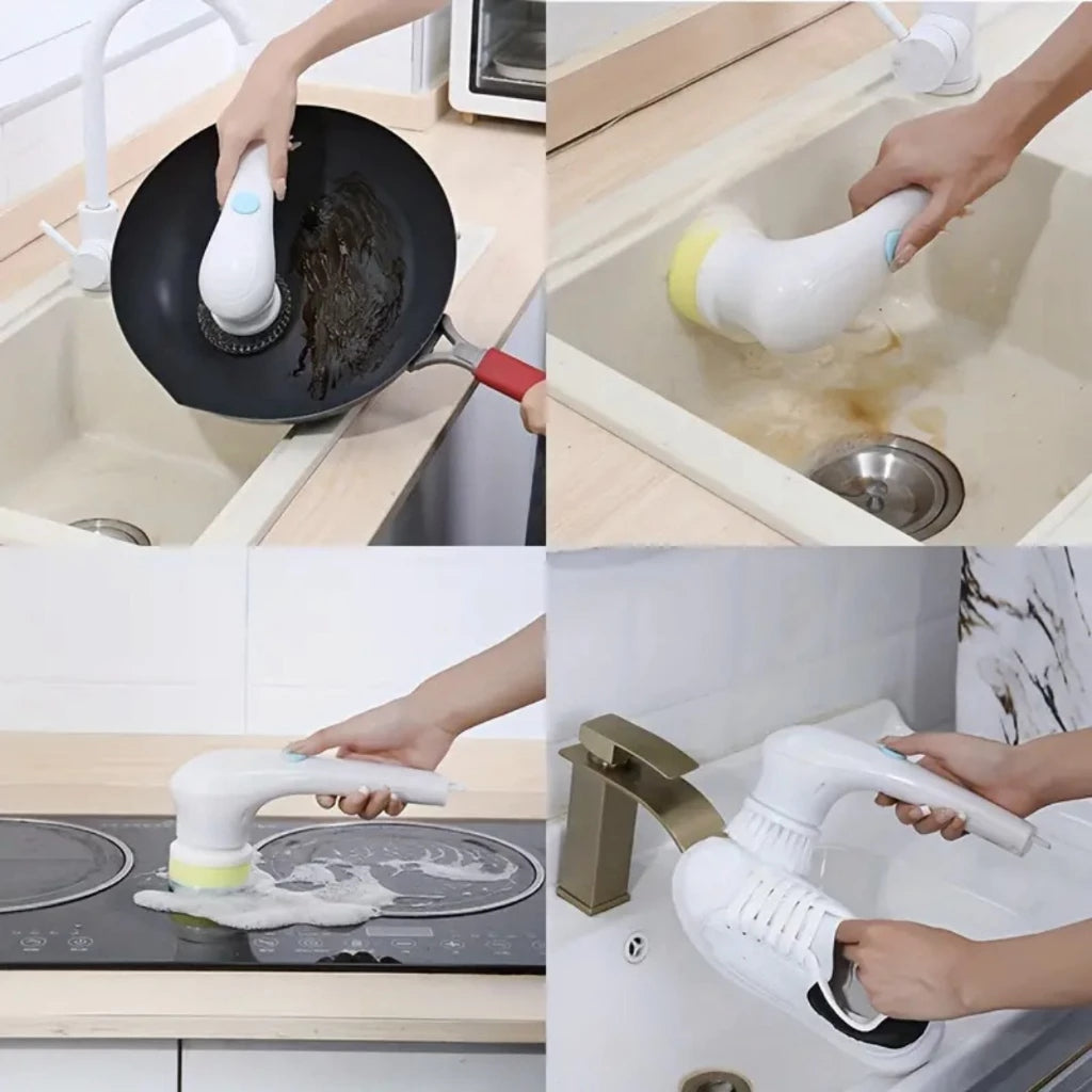 Escova Elétrica de Limpeza 5 em 1 Multifuncional Recarregável