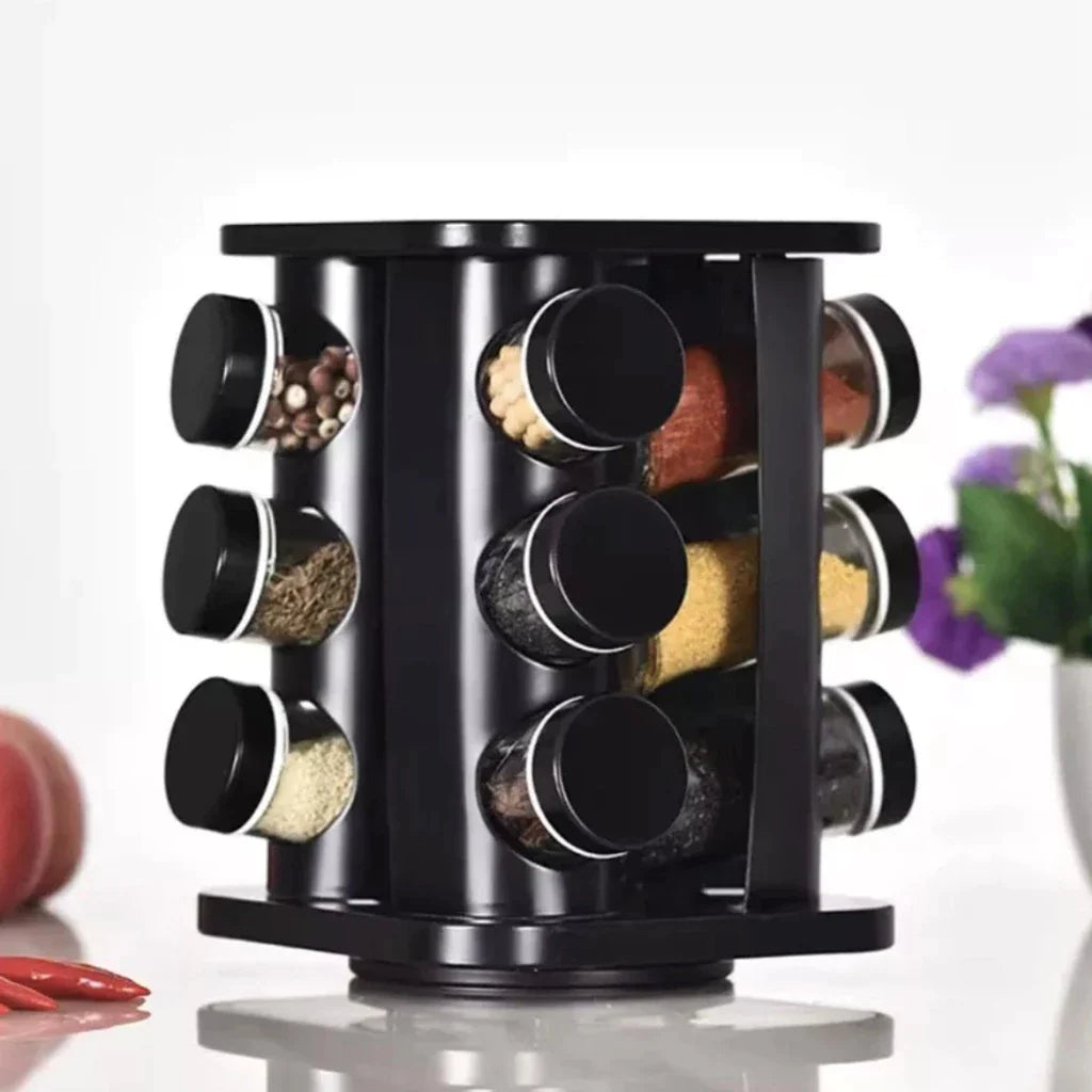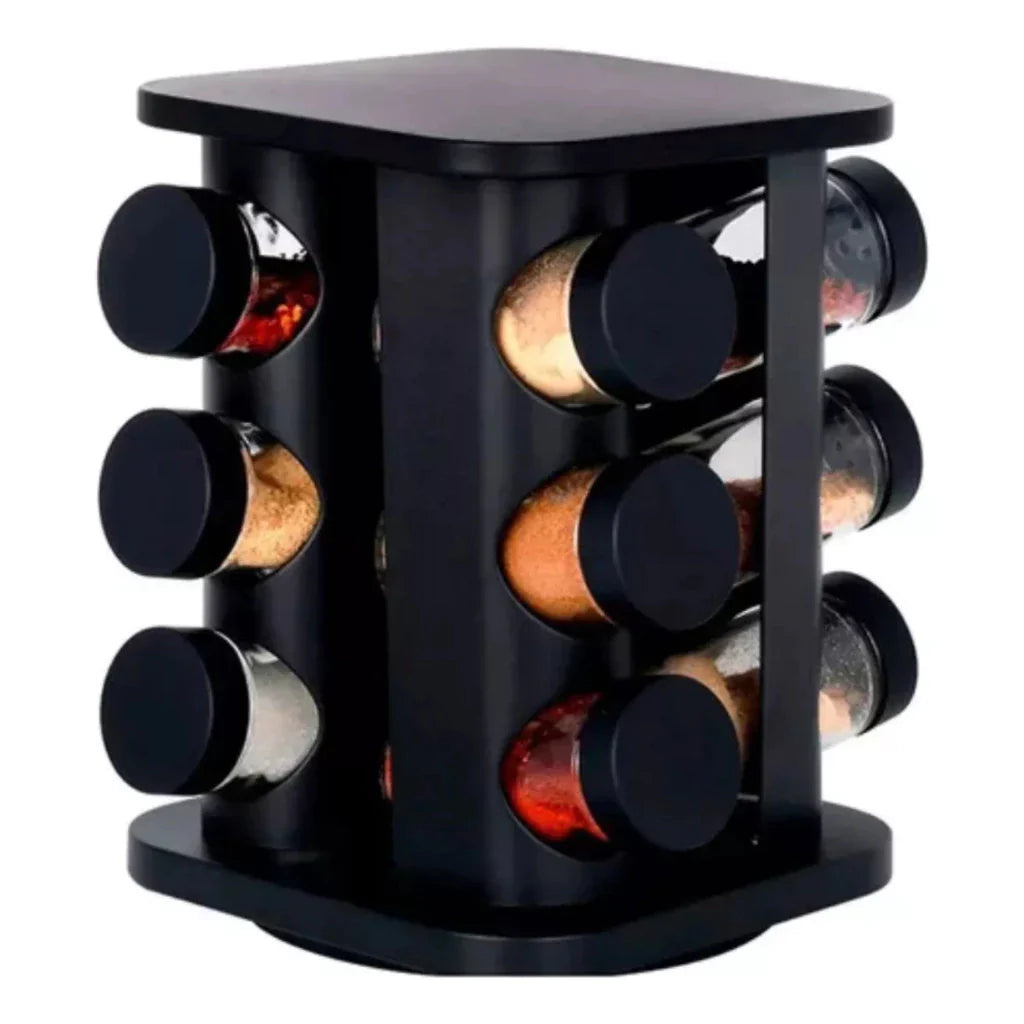 🖤 Porta Temperos Giratório 12 Potes de Vidro – Organização e Estilo na Sua Cozinha!